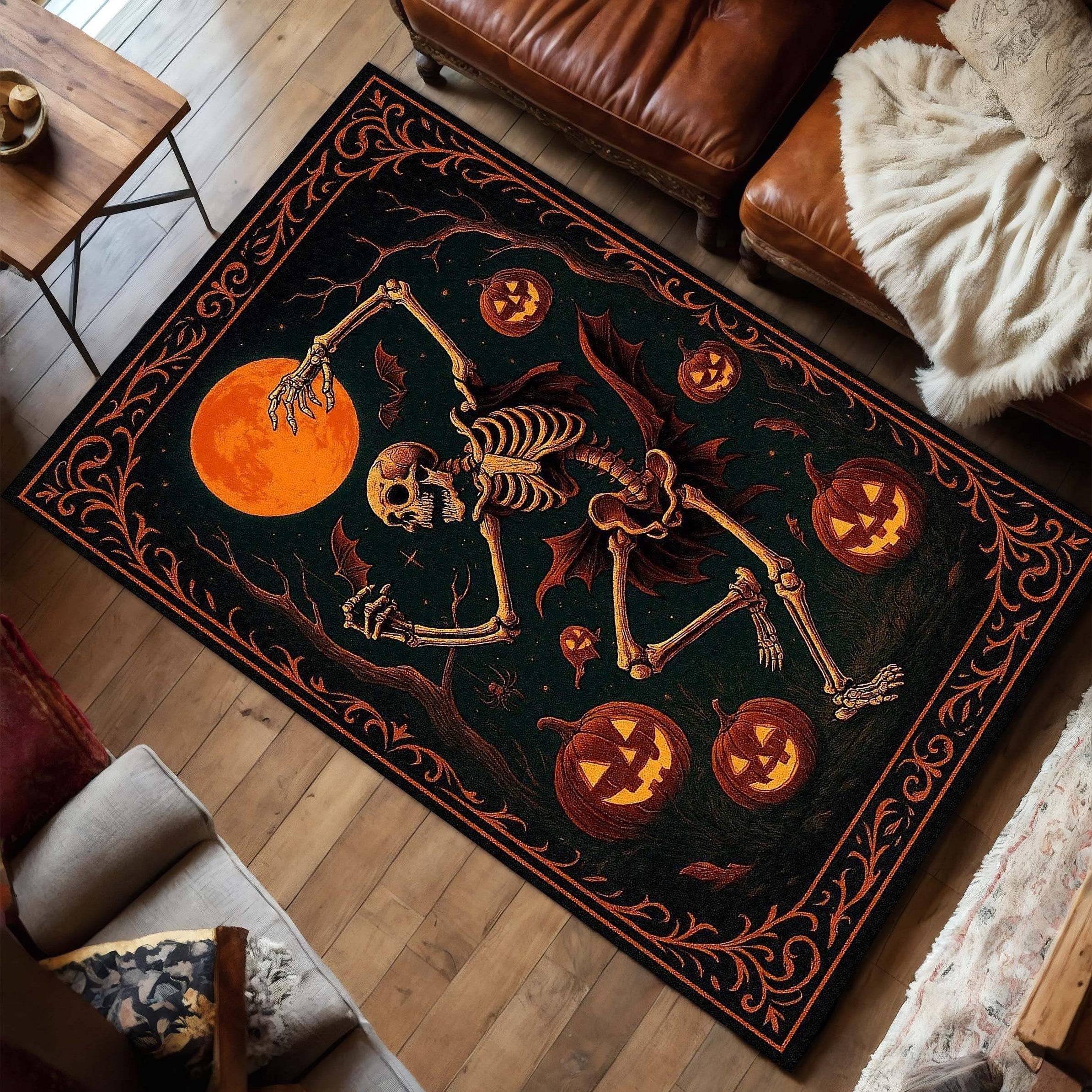 Dancing Skeleton Halloween Rug, Decorative Rug, Living Room Rug, Halloween Decor, Halloween Gifts