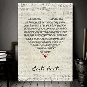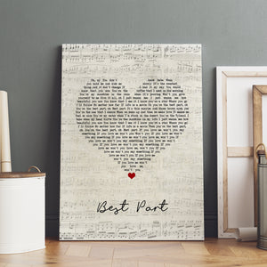 "Best Part" is a love song about the joy and completeness that comes from being with someone special. The heart shape symbolizes the emotional depth of that connection, while the lyrics convey how one person can be the “best part” of another’s life. This print is a visual representation of those feelings, making it ideal for couples and loved ones.