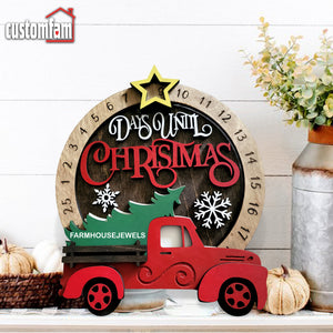 Days Until Christmas Red Truck With Christmas Tree Countdown Sign, Christmas Decor