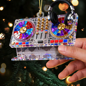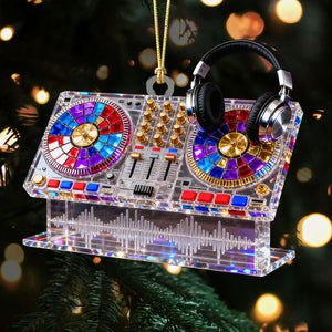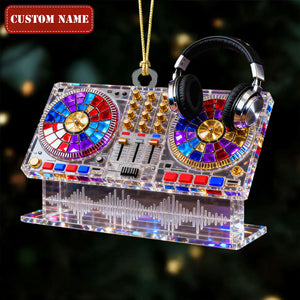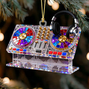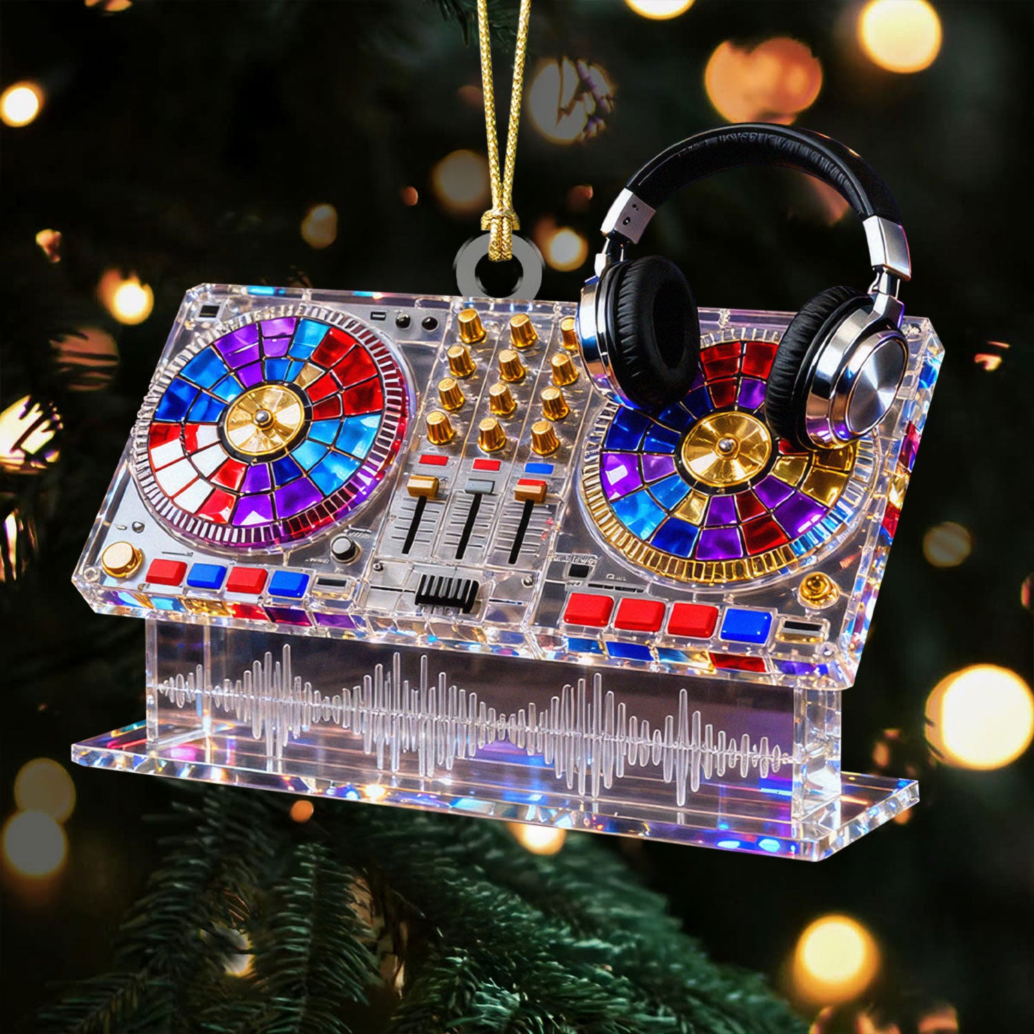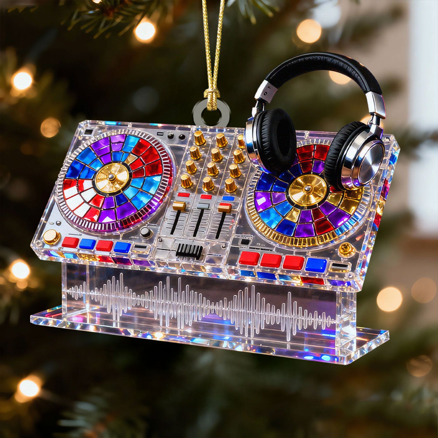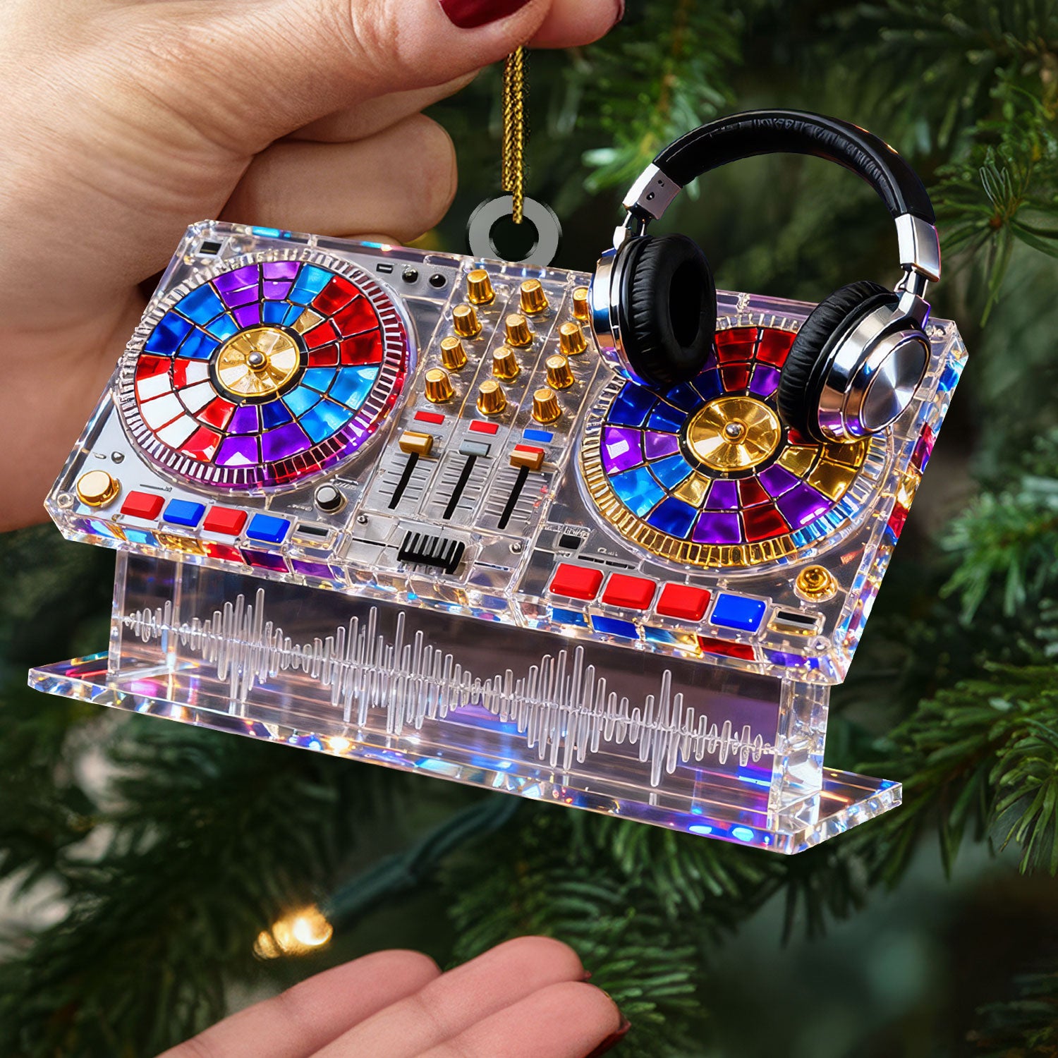 DJ Table Custom Name Stained Glass Effect Acrylic Christmas Ornament, Gift For DJ, Music Ornament
