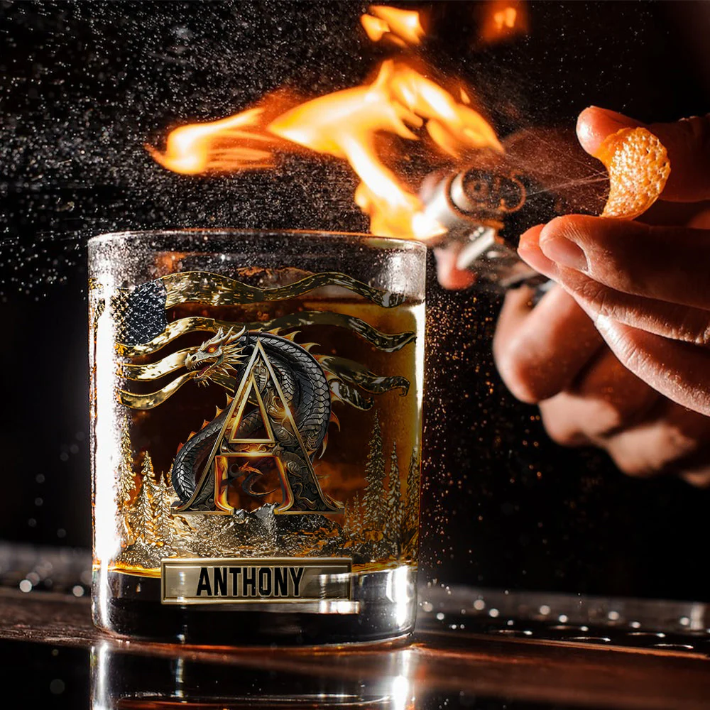Personalized Dragon Alphabet Whiskey Glass, Custom Letter Whiskey Glasses, Husband Gift Ideas