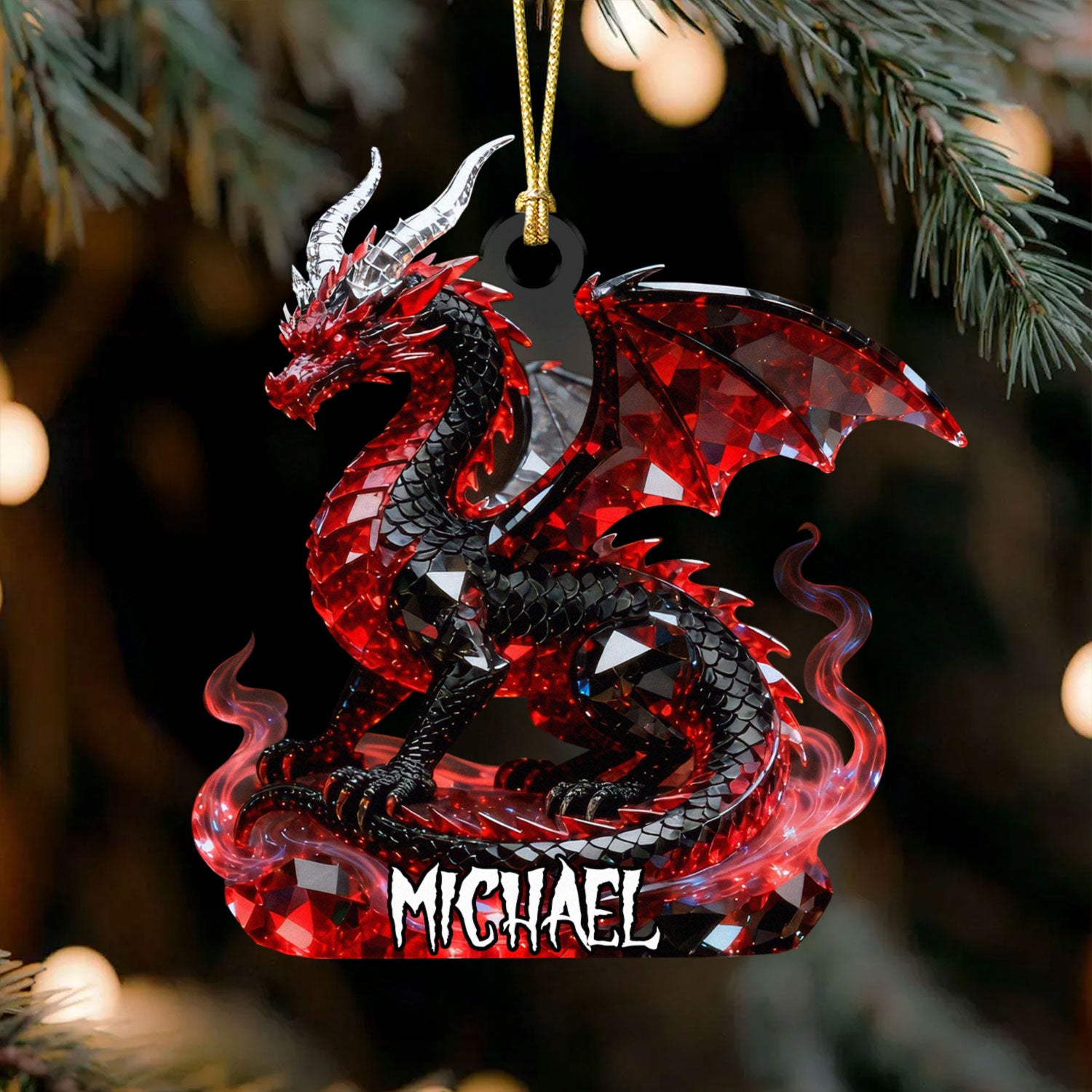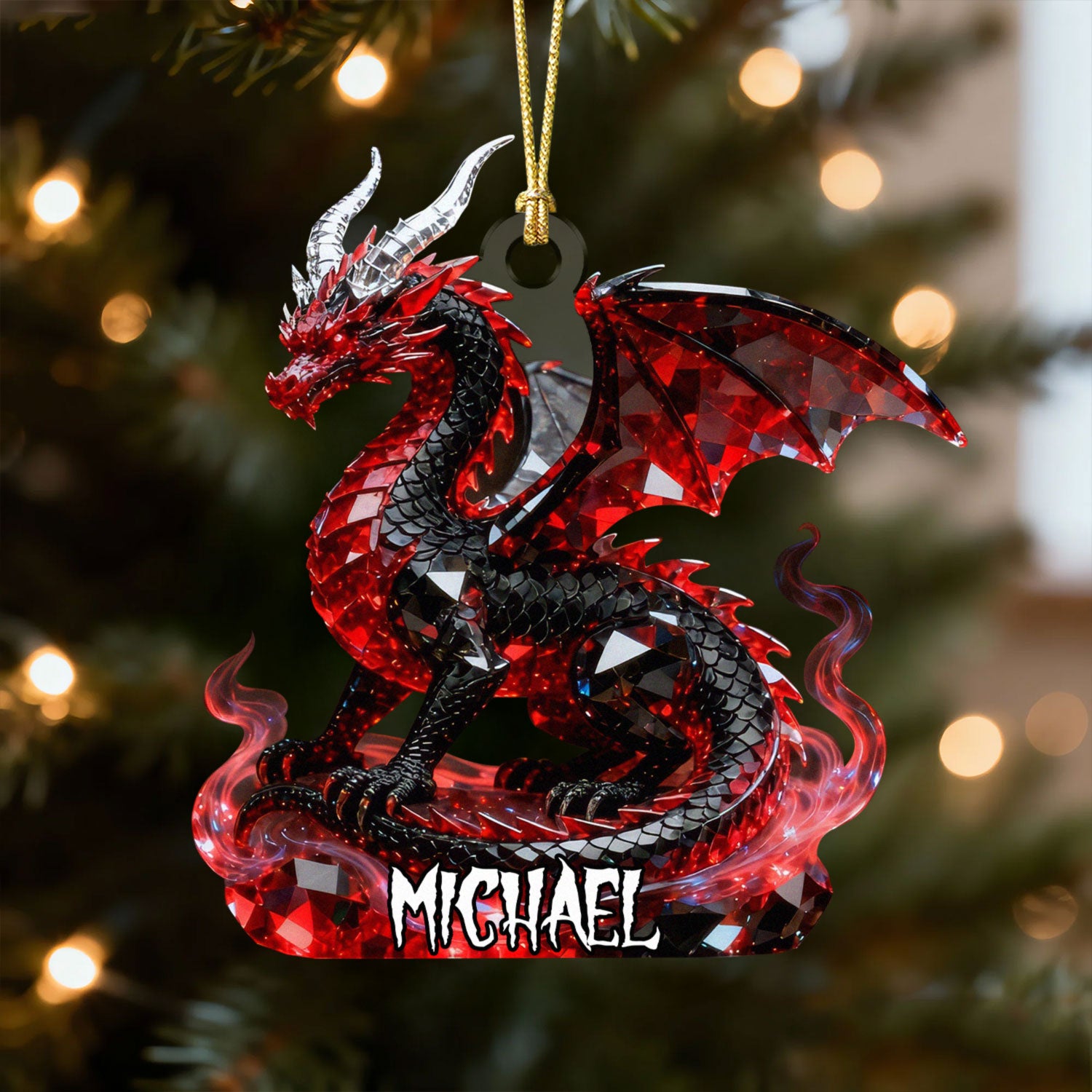 Dragon Red Stained Glass Crystal Effect Acrylic Ornament, Majestic Dragon Fantasy Lover Cool Christmas Gifts