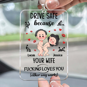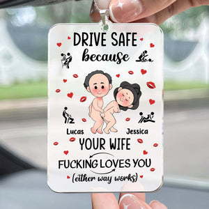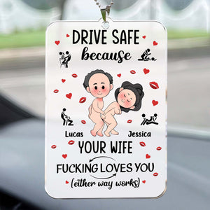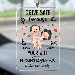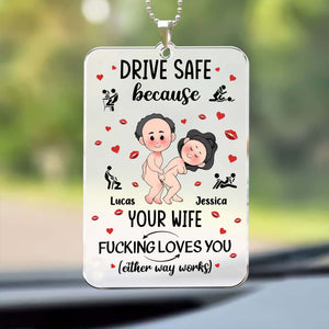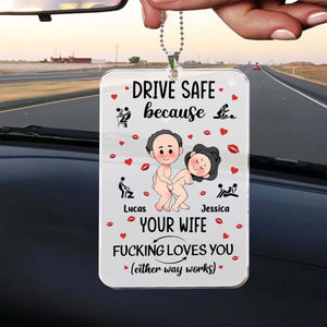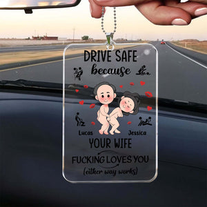 Drive Safe Because Your Wife F*cking Loves You Personalized Rear View Mirror Accessory, Couple Valentines Gift