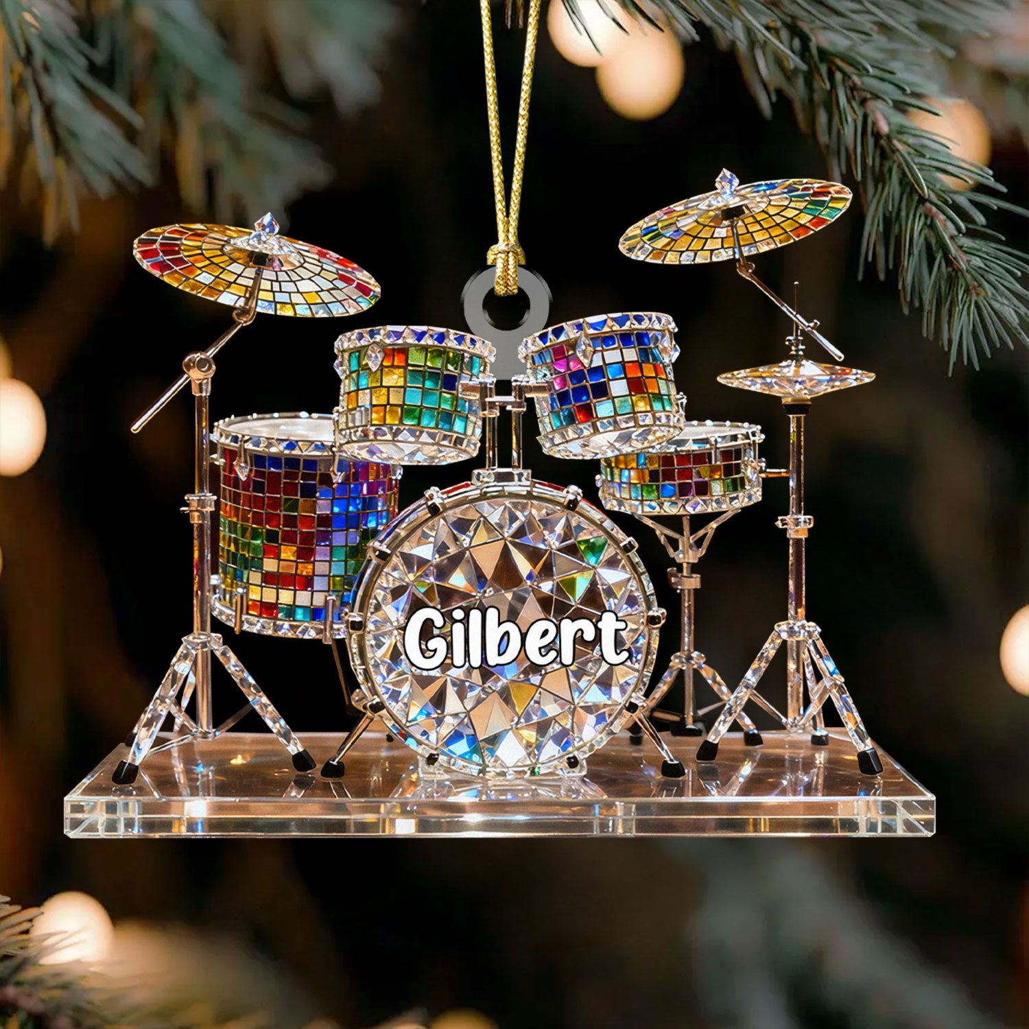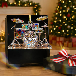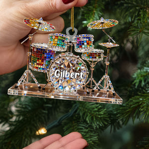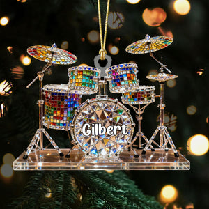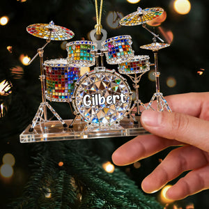 Drum Set Custom Name Stained Glass Effect Acrylic Christmas Ornament, Presents For Drummers