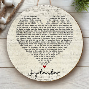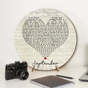 Earth, Wind & Fire September Script Heart Song Lyric Music Art Round Wood Sign, Wood Signs For Home
