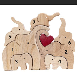 Elephant Family Customize Engraved Wooden Puzzle, Mother's Day Gift, Father Day's Gift, Family Puzzle, Home Decor