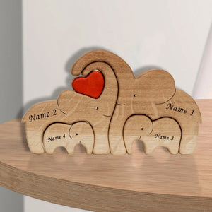 Personalized Elephant Family Engraved Wooden Puzzle β A Symbol of Love & Strength