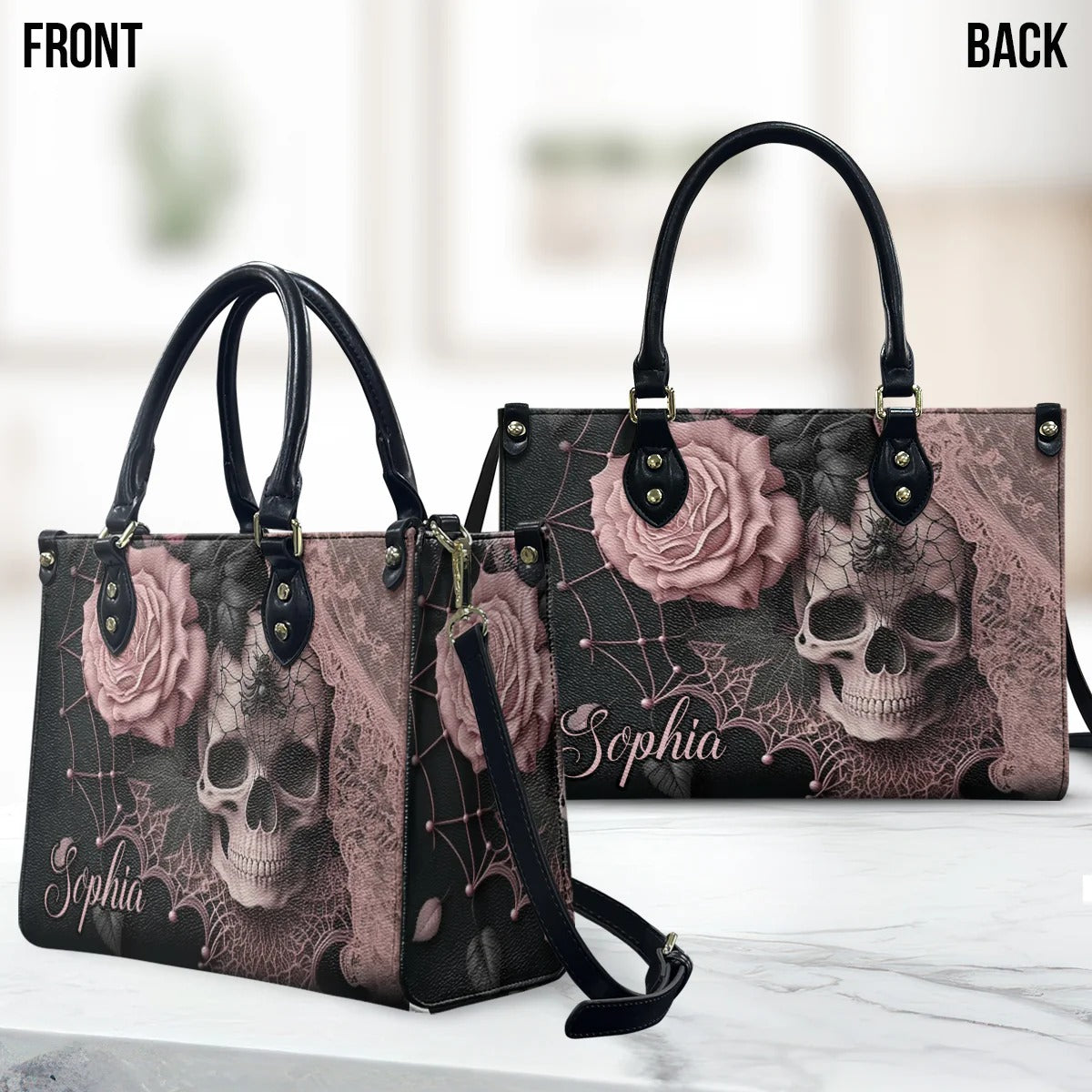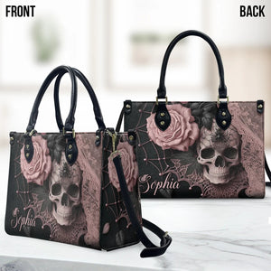 Enchanting Floral & Skull - Personalized Skull Leather Handbag - Boho Handbag - Leather Shoulder Bag