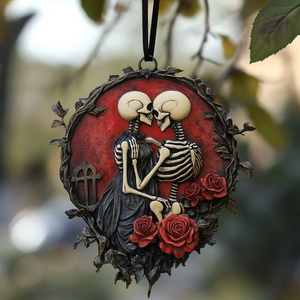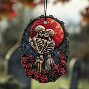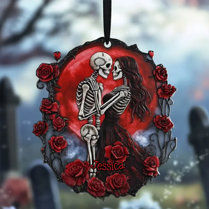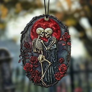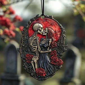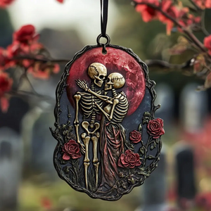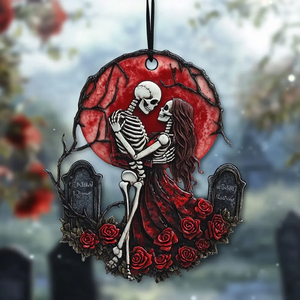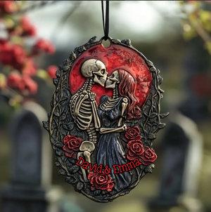Celebrate your unique love story with our Eternal Love Skull Couple Acrylic Ornament. Featuring a striking design of two skulls intertwined with a heart, this ornament symbolizes the unbreakable bond between you and your partner. Perfect for couples with a love for bold and unconventional style, this ornament makes a perfect newly engaged gift, Valentine's Day gift, or couple keepsake. Crafted from durable acrylic, this piece can be displayed as an ornament or transformed into a keychain, making it a versatile and lasting reminder of your eternal love.