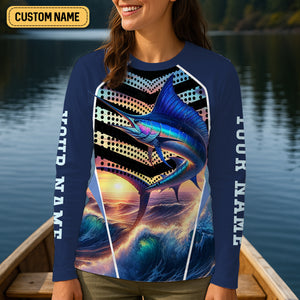 Made with lightweight, breathable polyester, it's built to handle both sun and splash. The vibrant all-over print brings your fishing lifestyle to life, while the UV Protection UPF 30+ keeps your skin safe under the open sky. Whether you're casting from a boat or kicking back at the dock, this shirt is your go-to gear for comfort and style.