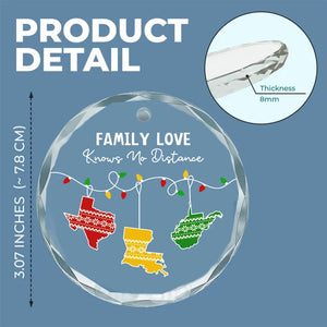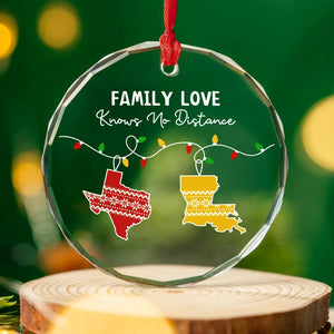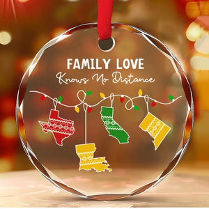 Family Love Knows No Distance Custom Glass Christmas Ornament, Family Gifts