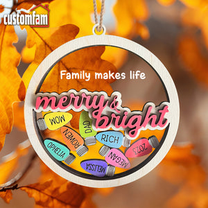 Family Makes Life Merry & Bright Personalized Family Christmas Ornaments, Christmas Gifts