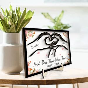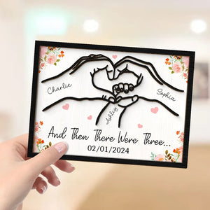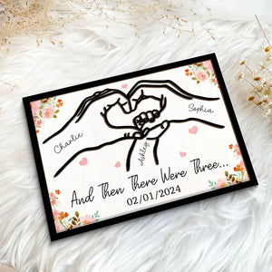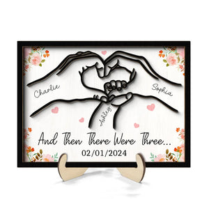 Family Of Three Heart Hand Personalized 2-Layer Wooden Plaque, Mother's Day Gift, Father's Day Gift
