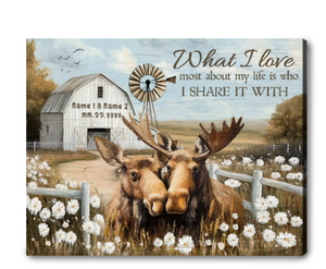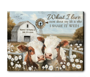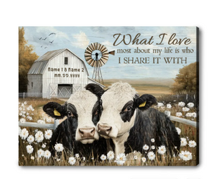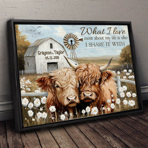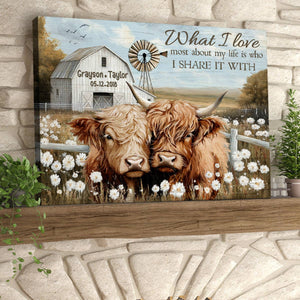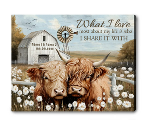 Farmhouse Highland Cow Custom Couple Canvas Wall Art, Wedding Anniversary Gifts
