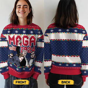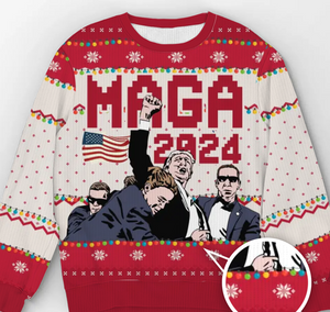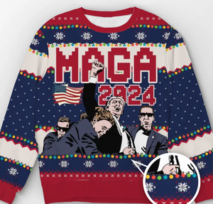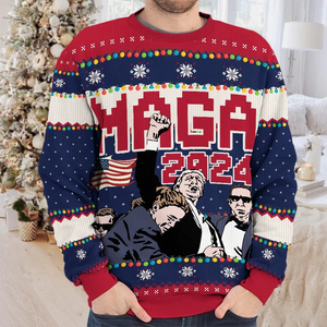 Fight Fight Fight! Trump 2024 Funny Christmas Ugly Sweater - Funny Political Shirt