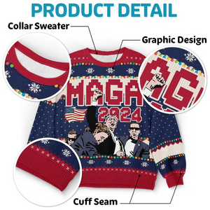 Fight Fight Fight! Trump2024 Funny Christmas Ugly Sweater, Funny Political Shirts