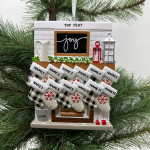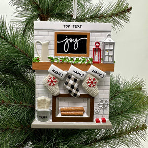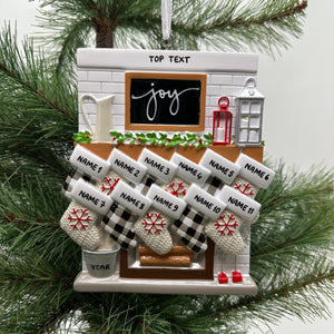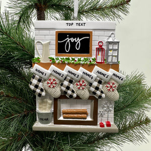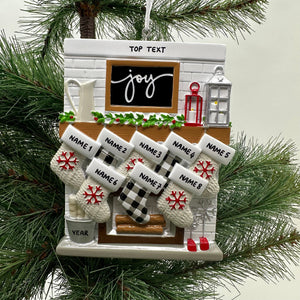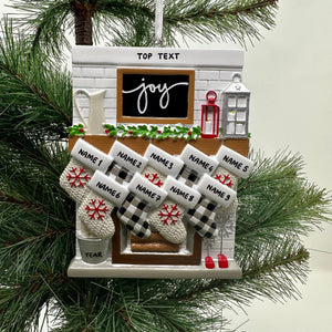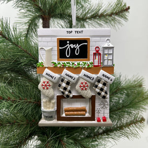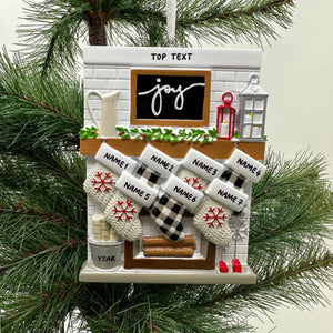 Fireplace Mantel Family Stocking Joy Ornament, Personalized Christmas Gift