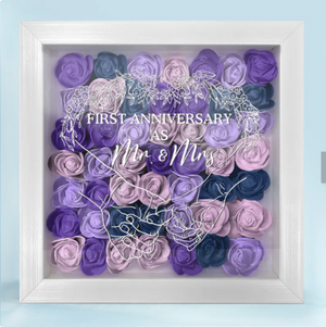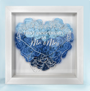 Celebrate the love and commitment of your first year together with the "Couple First Anniversary As Mr. & Mrs. - Personalized Flower Shadow Box". This beautiful and unique keepsake features a custom design with the couple’s names and the date they became Mr. and Mrs., framed by delicate, preserved flowers. It’s a heartfelt and meaningful way to commemorate a milestone in your relationship.