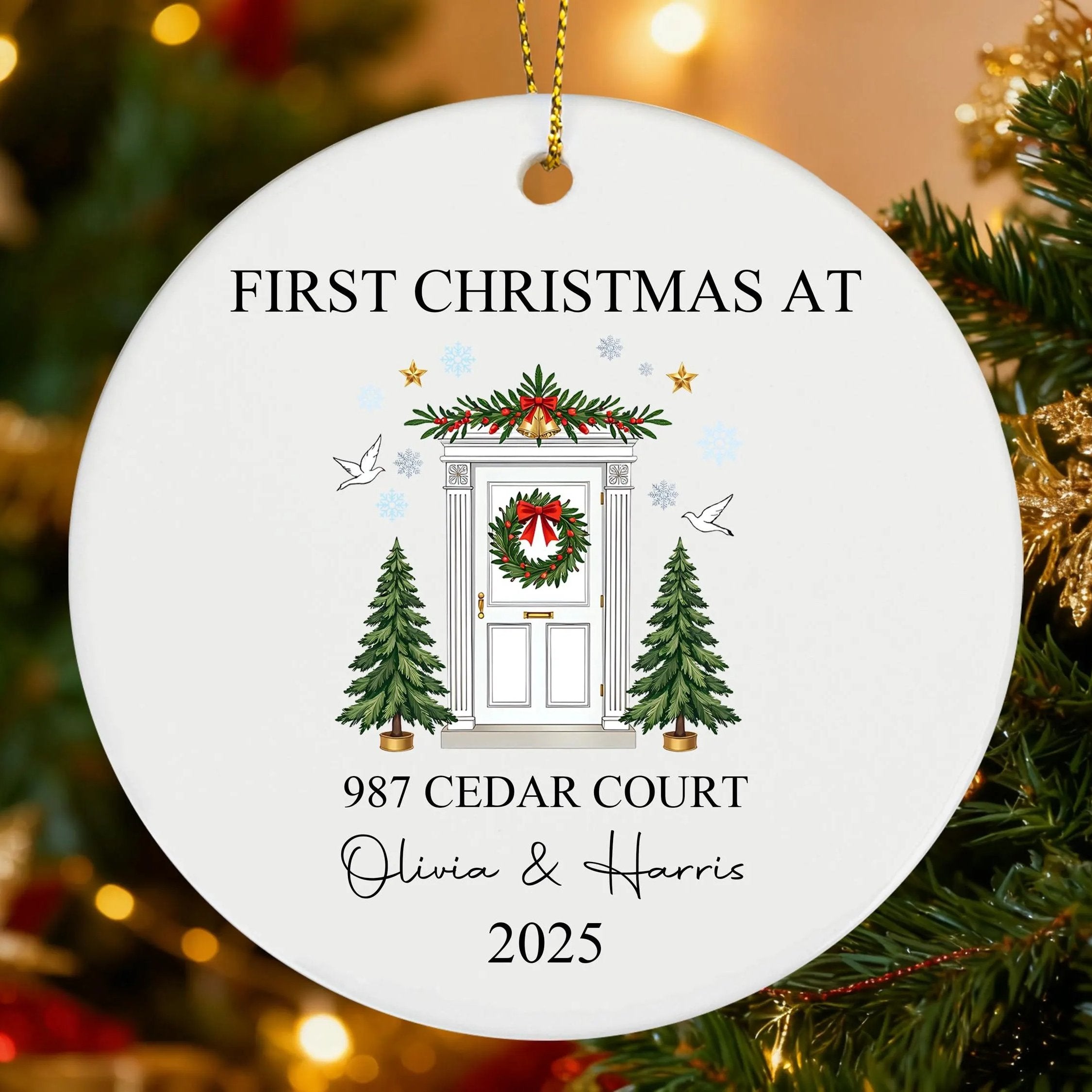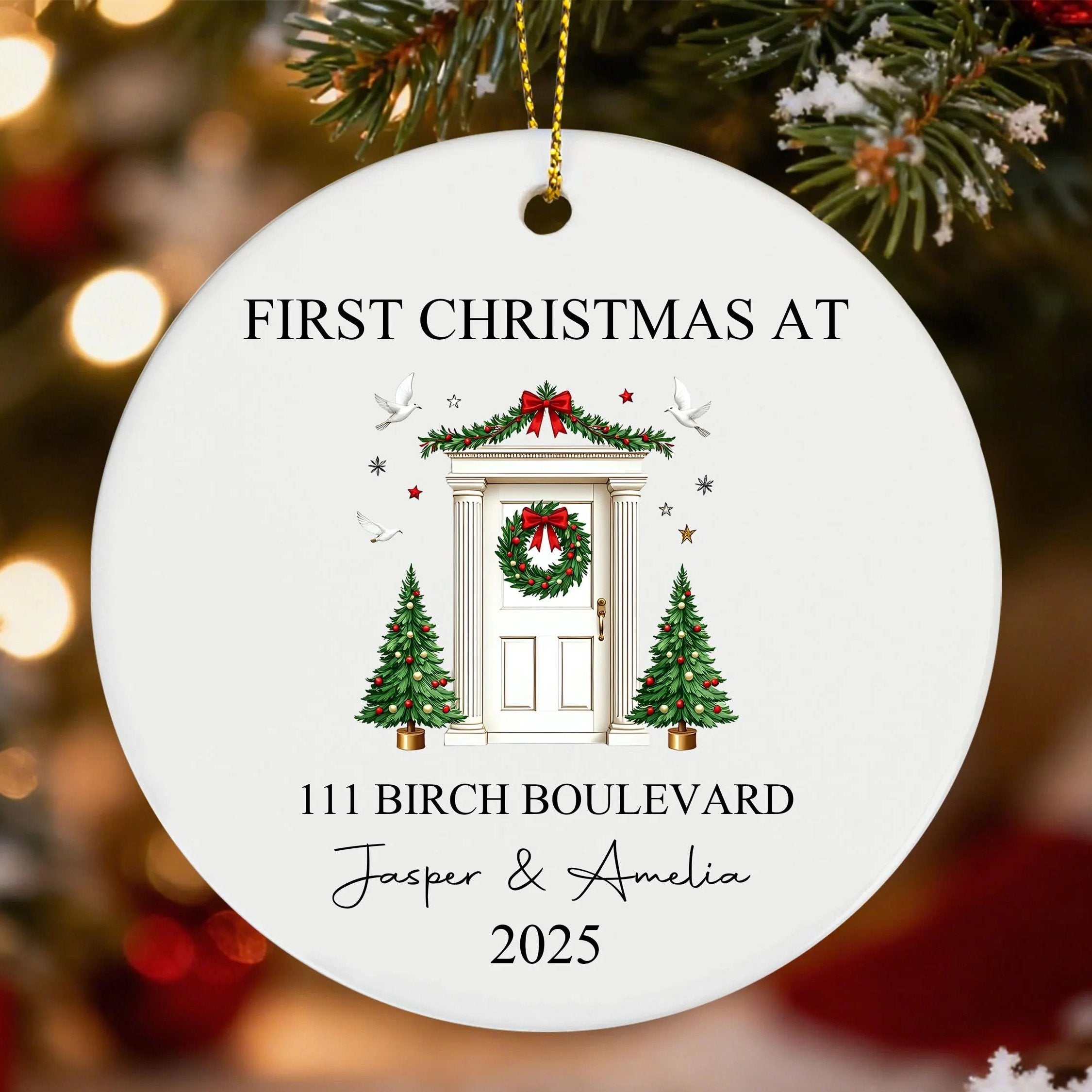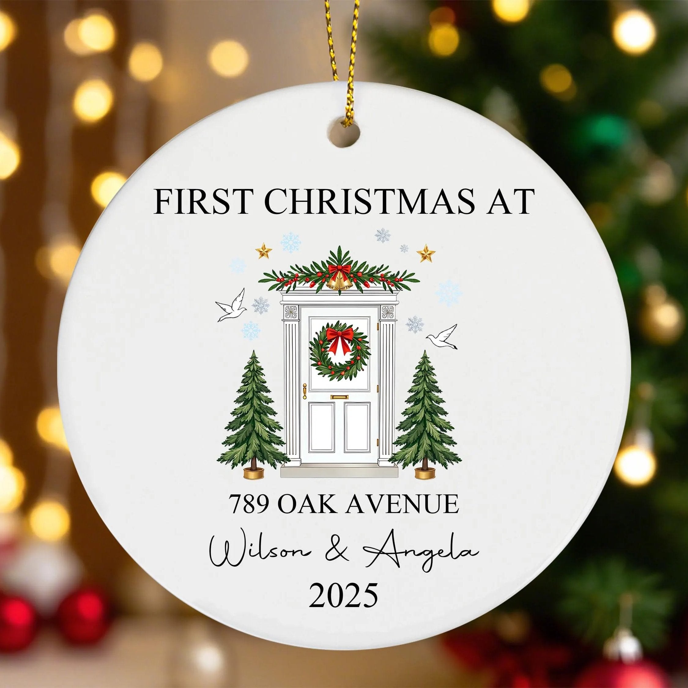 First Christmas In Our New Home Ornament, Custom Ceramic Ornament, Gift For Engaged Couple