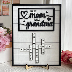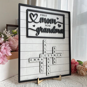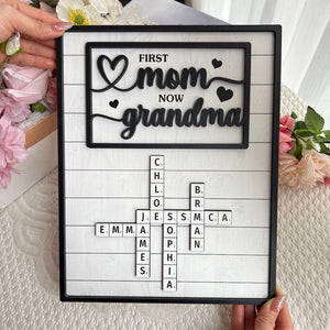First Mom Now Grandma 2-Layered Wooden Plaque, Custom Name Crossword Wood Sign, Mother's Day Gift