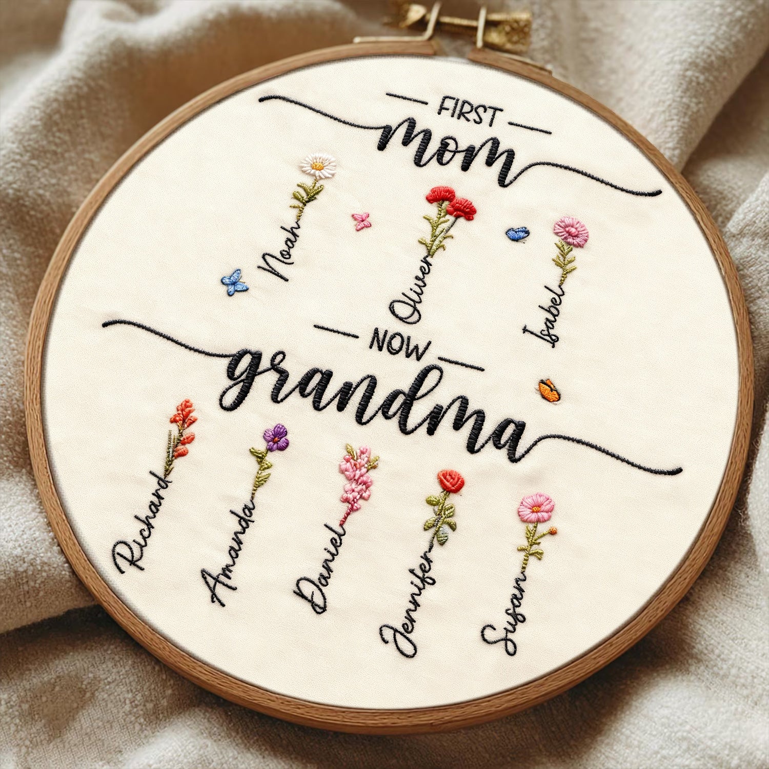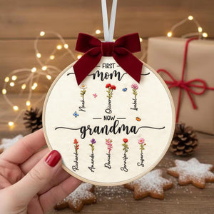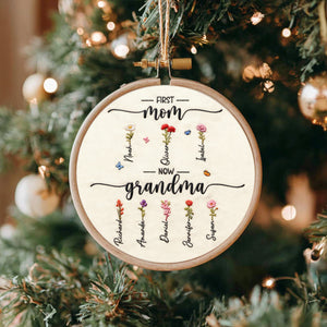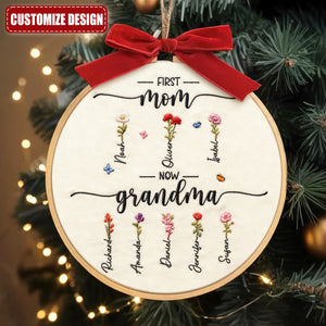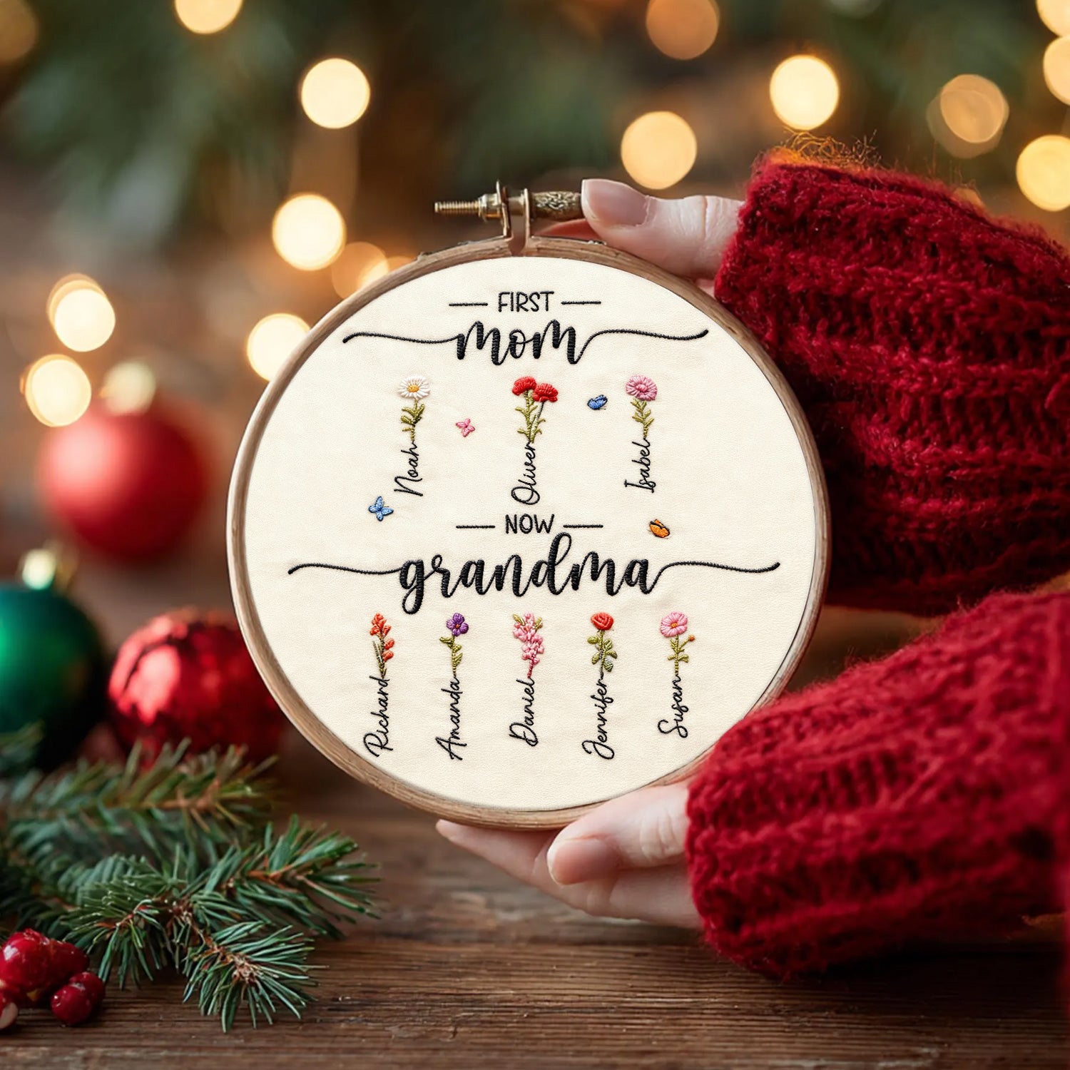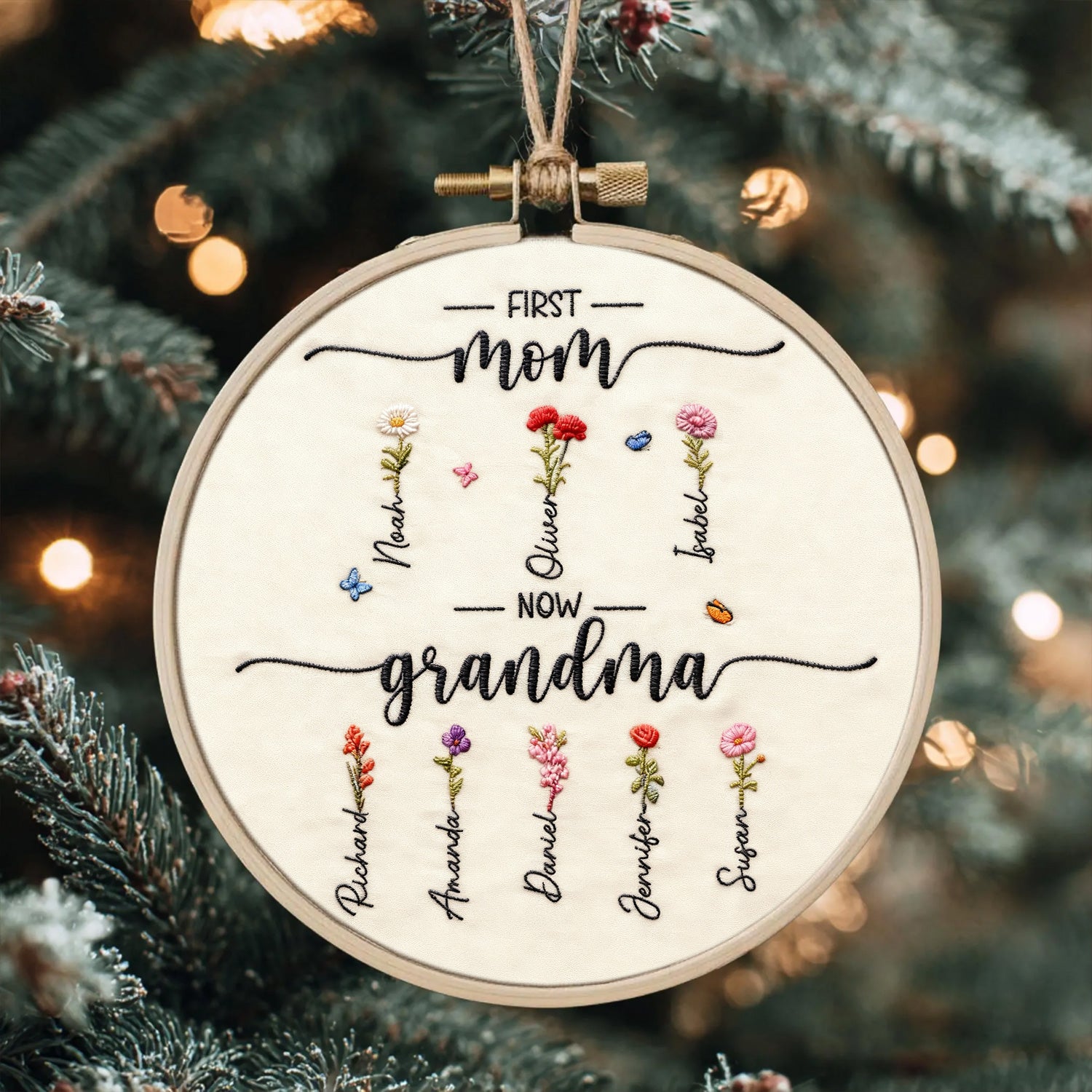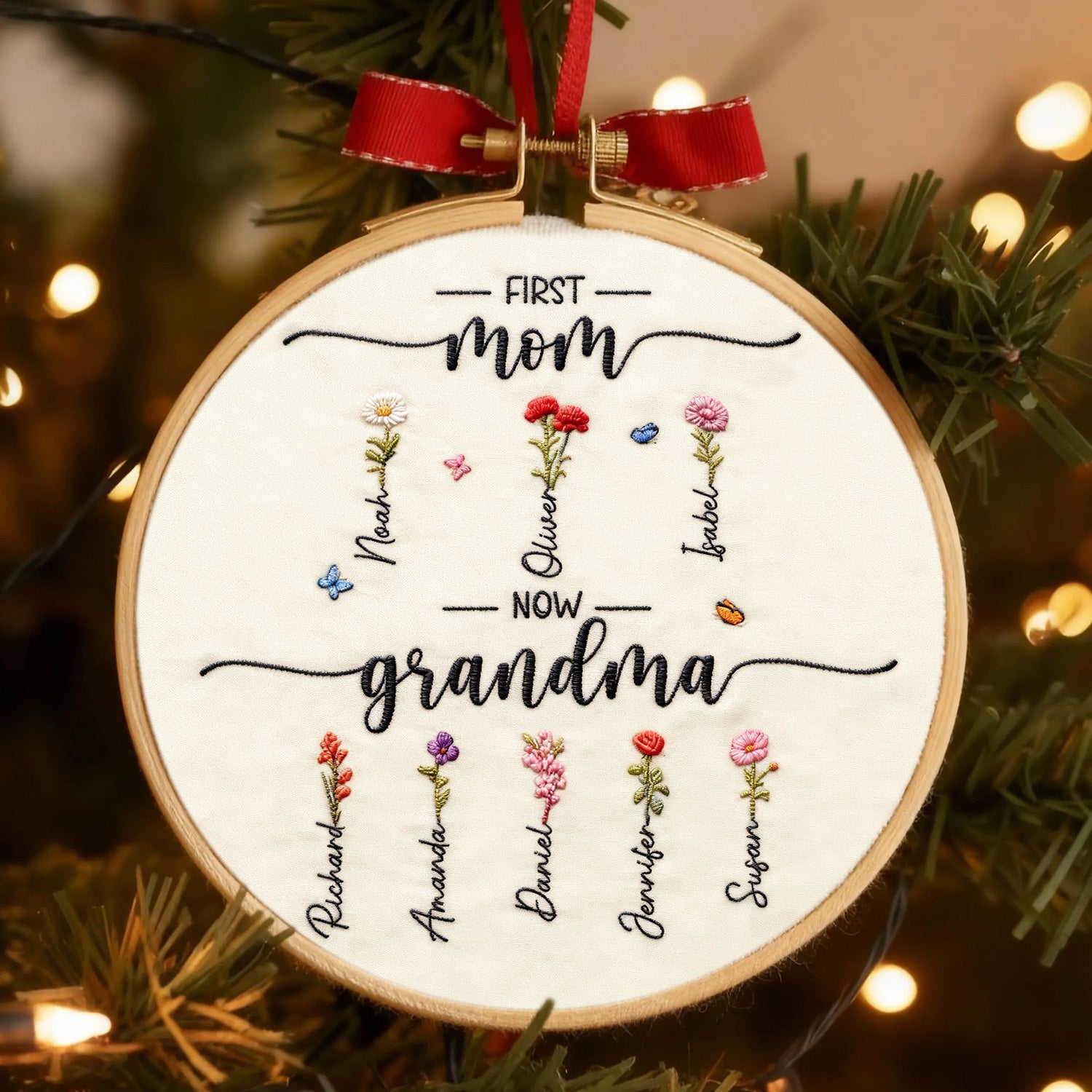 First Mom Now Grandma Embroidery Hoop Ornament, Flowers Ornament, Grandma Christmas Gift