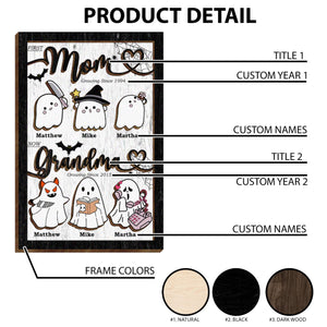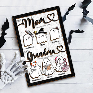 Charming Ghost Design: The sign features cute, friendly ghost characters, symbolizing the transition from Mom to Grandma in a fun and whimsical way. Each ghost can be customized with the names of her children and grandchildren, making it a truly special keepsake.