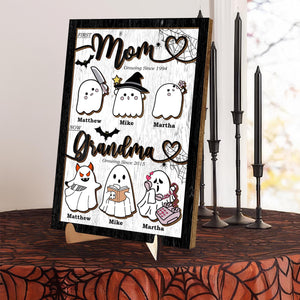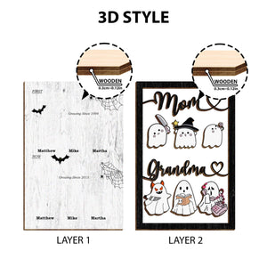 First Mom Now Grandma Personalized Halloween Wooden Sign, Cute Spooky Ghosts, Halloween Decor