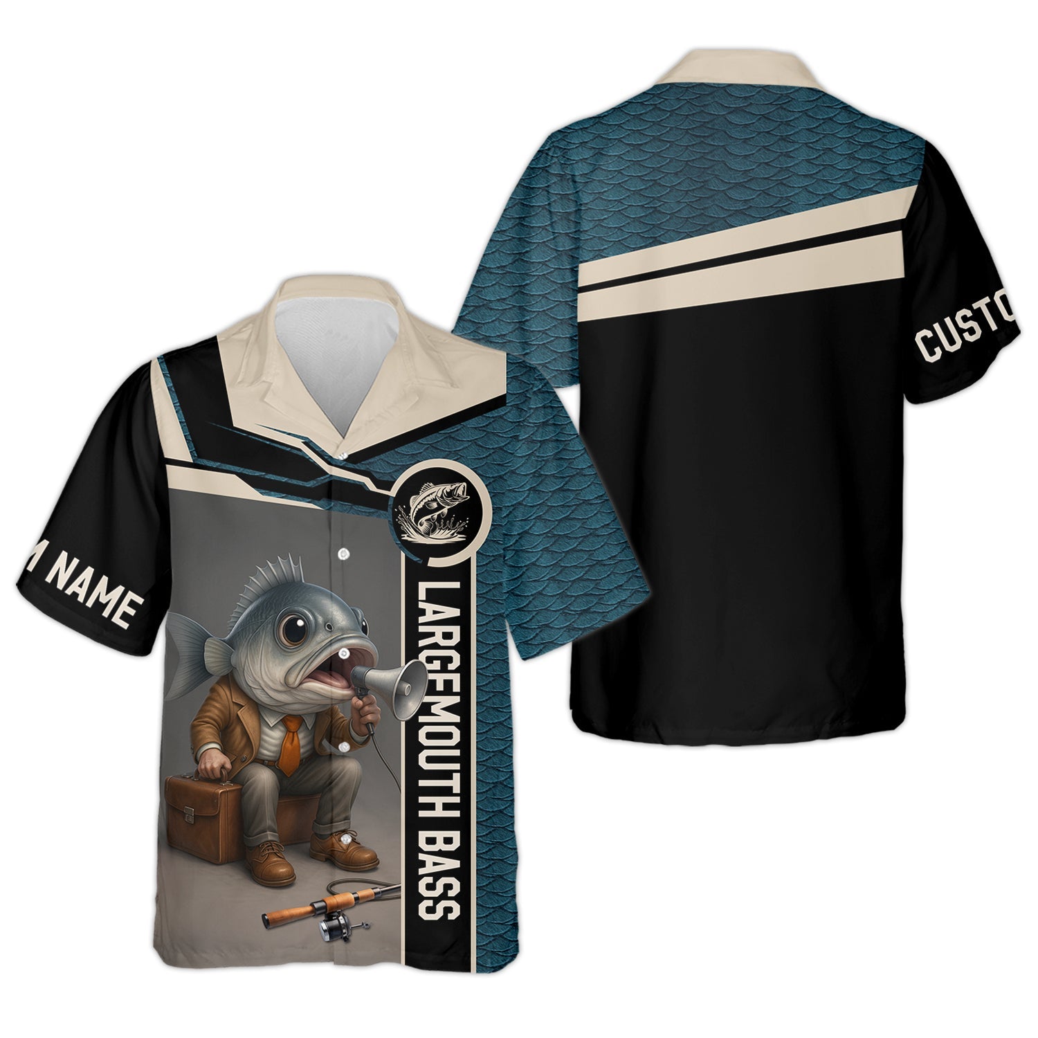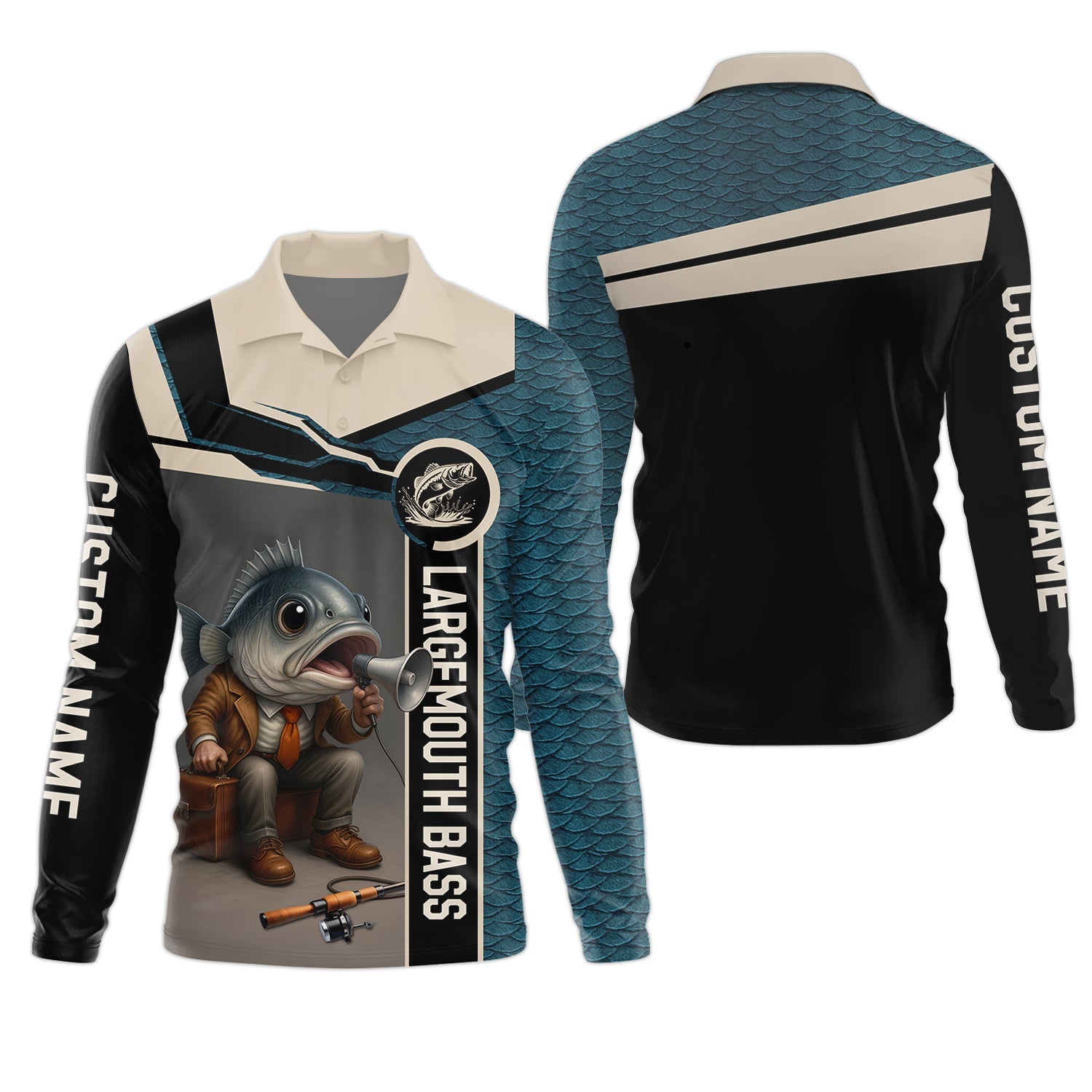 Fish Scale Pattern Largemouth Bass Fishing SPF Shirt, Men Button Down Shirt, Presents For Fishermen