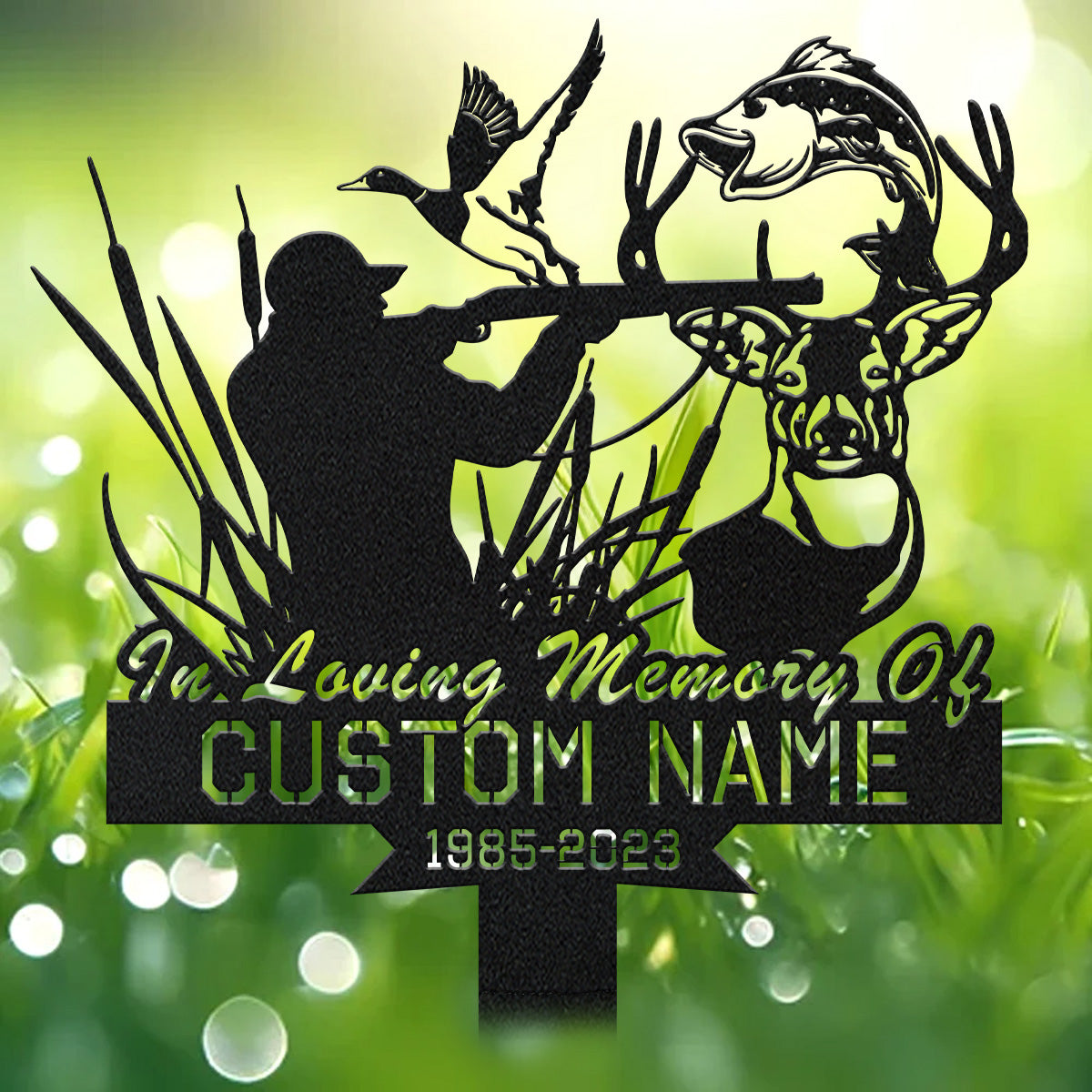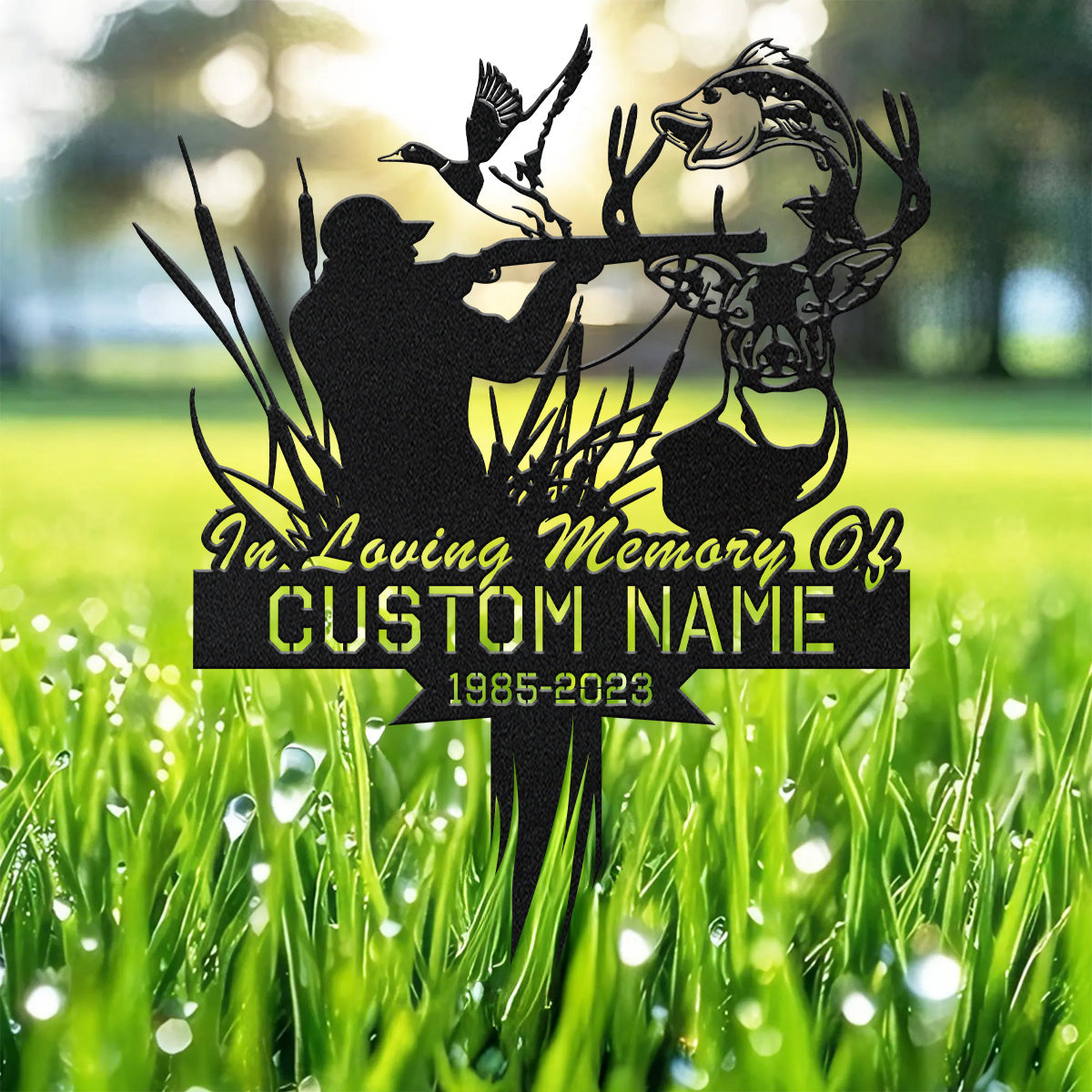 Fisherman Memorial, Hunting Metal Sign, Metal Name Signs, Decorative Garden Stakes, Outdoor Metal Wall Art