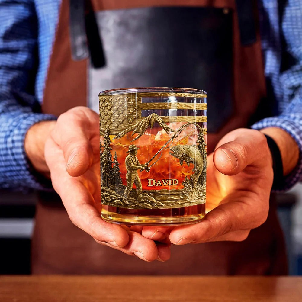 Fishing For Life Custom Whiskey Glass, Personalized Whiskey Glasses, Gifts For Bourbon Drinkers