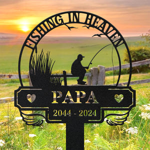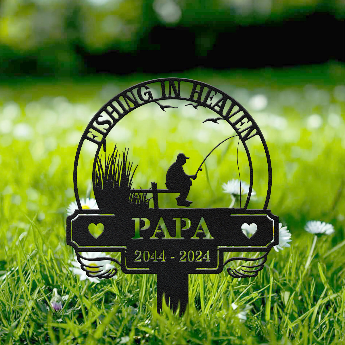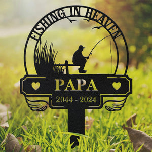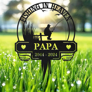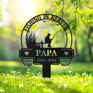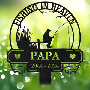 Fishing In Heaven, Papa Fishing Memorial Garden Stake, Personalized Metal Signs, Metal Garden Stakes