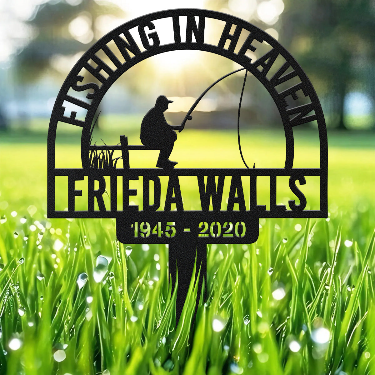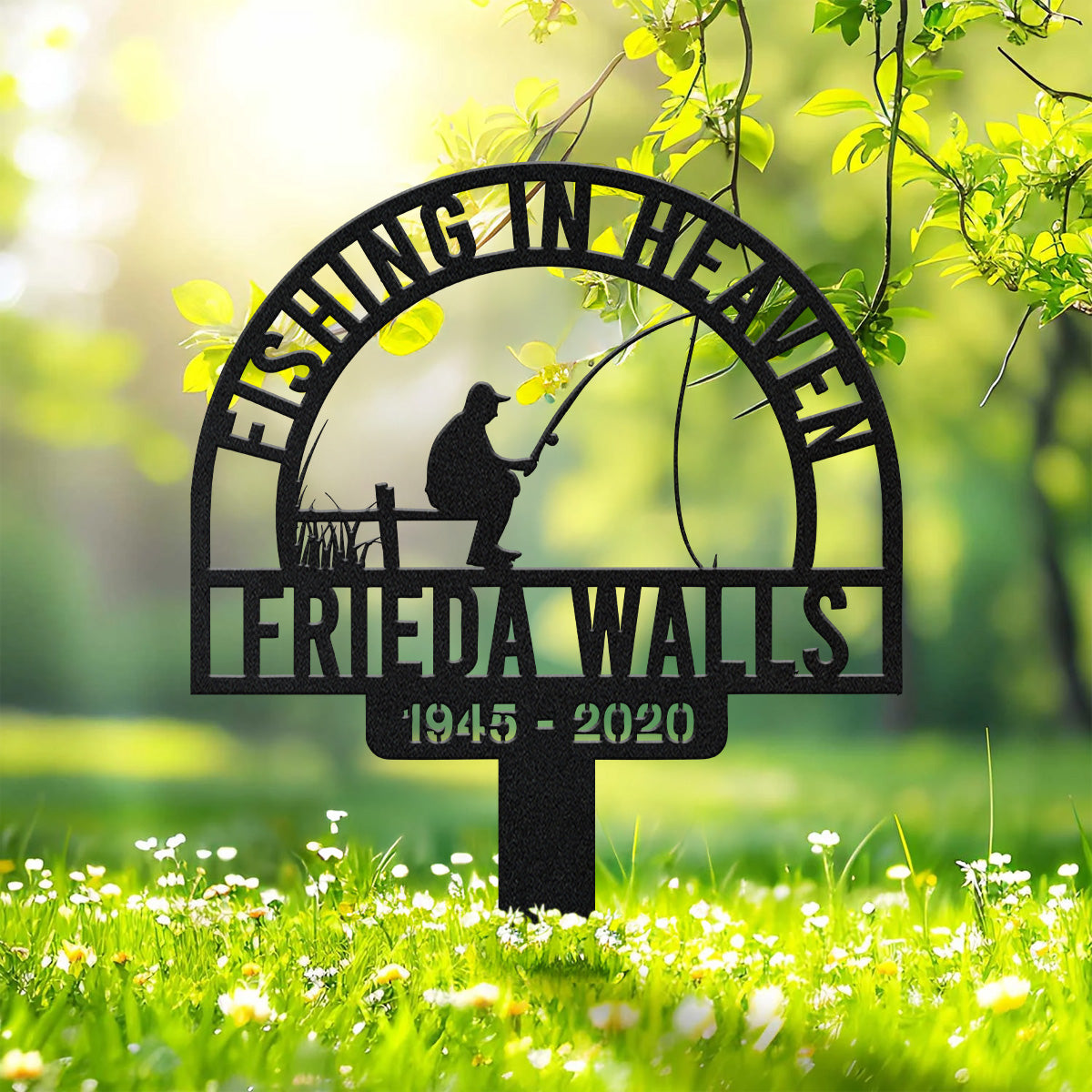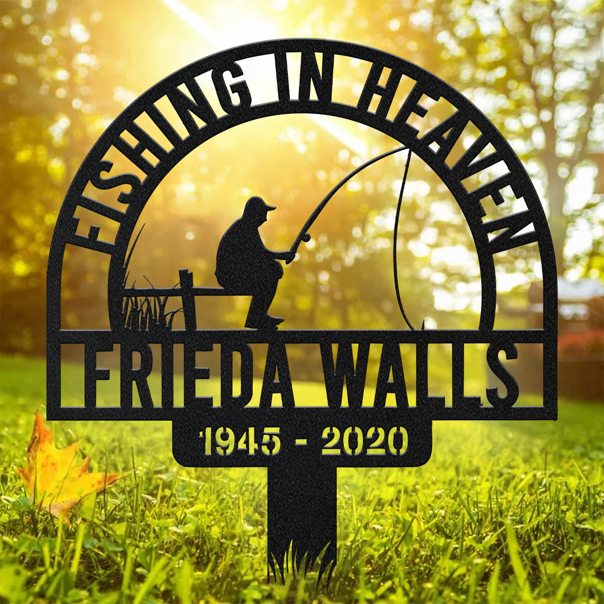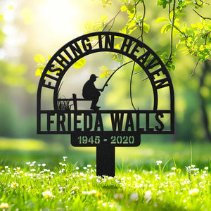 Fishing In Heaven, Remembrance Metal Stake, Metal Name Sign, Personalized Metal Signs