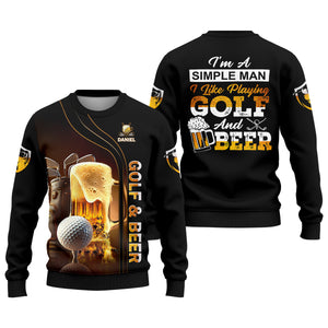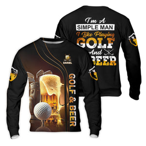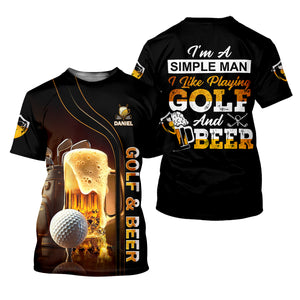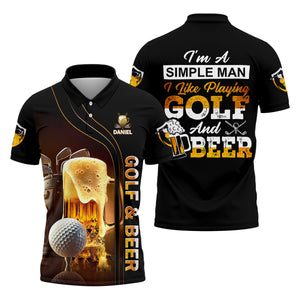 I'm A Simple Man I Like Playing Golf And Beer Custom Golf Polo Shirt, Best Golf Gift For Men