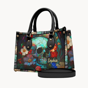 Floral Skull - Personalized Skull Leather Handbag - Boho Handbag - Leather Shoulder Bag