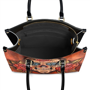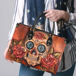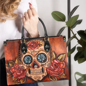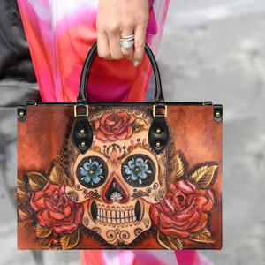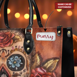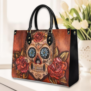 Personalized Flower Skull Personalized Leather Handbag, Skull Purse, Gothic Gifts