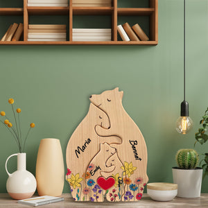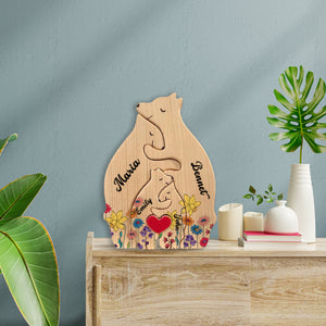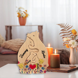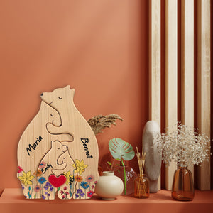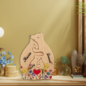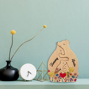 Flowers Bear Family Custom Wood Engraved, Mother's Day Gift, Father's Day Gift, Family Gift Idea