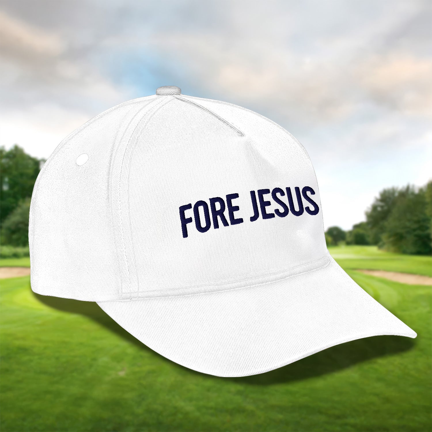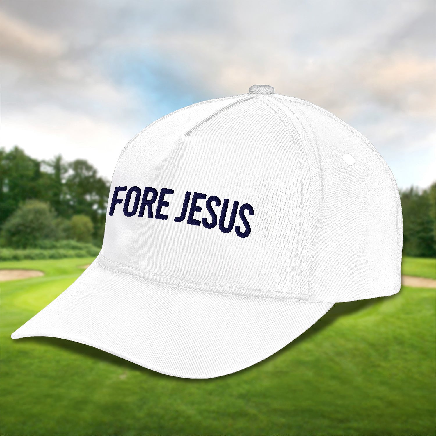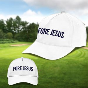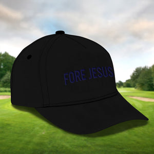 Fore Jesus Navy Embroidered Baseball Cap, Funny Dad Hat