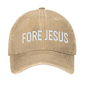 Fore Jesus White Embroidered Baseball Cap, Funny Dad Hat