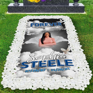 HIGH QUALITY MATERIAL: Made from Heavy Duty material, weather-waterproof and UV resistant material. Durable outdoor use; It can last through all seasons(possibly longer). Our custom memorial grave blankets DO NOT INCLUDE ROCKS/STAKES OR ACCESSORIES.