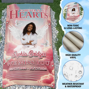 Forever In Our Hearts Personalized Memorial Gravestone Blanket, Grave Blanket, Gifts For Lost Loved Ones