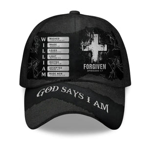 God Say I Am is the perfect blend of style, comfort, and faith. Designed with a modern twist on a traditional baseball cap, this Christian-inspired hat is an ideal accessory for men who want to proudly display their faith while staying on-trend. Whether you're heading out for a casual day or need a thoughtful Christian gift, this cap is a versatile choice. The bold "Forgiven Bible Verse" print on the front makes a statement, while its durable construction ensures long-lasting wear.