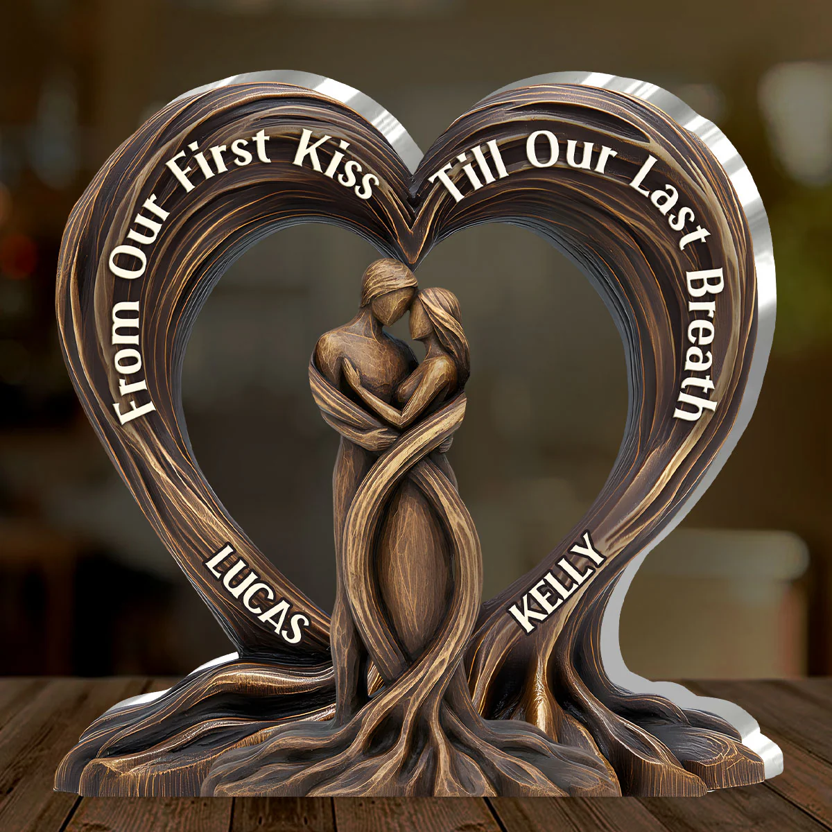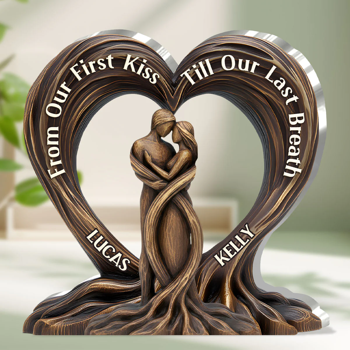 From Our First Kiss Till Our Last Breath Heart Trees Acrylic Plaque, Couple Anniversary Personalized Acrylic Plaque