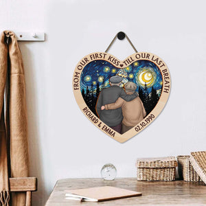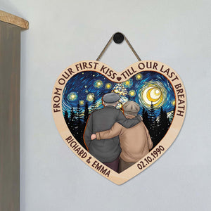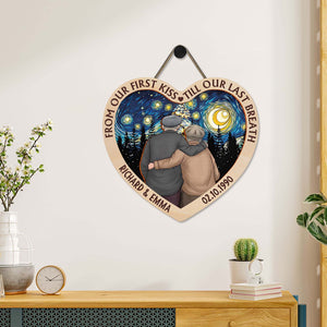 From Our First Kiss Till Our Last Breath Personalized Couple Heart Wood Sign, Valentine Gifts
