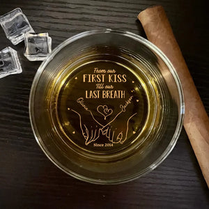 From Our First Kiss Till Our Last Breath Personalized Whiskey Glass, Couple Valentine Gift, Anniversary Gifts