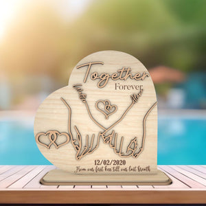 Together Forever Couple Holding Hands Wooden Sign, Pinky Promise Valentines Day Sign, Couple Anniversary Gifts
