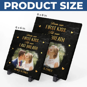 Celebrate the enduring love between you and your special someone with this "From Our First Kiss To Our Last Breath" Stone. This personalized Custom Photo Slate Stone beautifully captures a moment in time, along with a meaningful message that symbolizes everlasting love. Whether it’s your first Christmas together or a milestone celebration, this unique gift makes an unforgettable keepsake for couples.