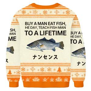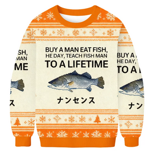 Funny Buy A Man Eat Fish Orange Ugly Sweater, Funny Christmas Ugly Sweatshirt, Xmas Ugly Sweater