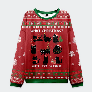 Funny Cat What Christmas Get To Work Funny Ugly Sweater, Ugly Xmas Sweater, Christmas Ugly Sweatshirt