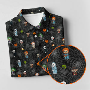Funny Horror Character Black Golf Polo Shirt, Horror Movie Shirt, Halloween Golf Shirt, Womens Golf Polo