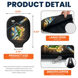 Want to stun everybody at the pickleball court? Elevate your game with this unique and customizable pickleball paddle cover. Perfect for you or a close one who plays pickleball, this cover not only protects your pickleball paddle but also expresses your personal style.